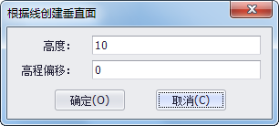 2. 点击三维建模工具条上“拾取线生成竖面”命令, 选择该命令后,在场景内点击鼠标左键选中一条线,弹出下图所示对话框,“高度”即生成的面数据在Z方向的高度,“高程偏移”即将线图元在Z方向偏移一定量后再生成面,设置完参数后点击"确定"按钮,系统自动生成竖面。