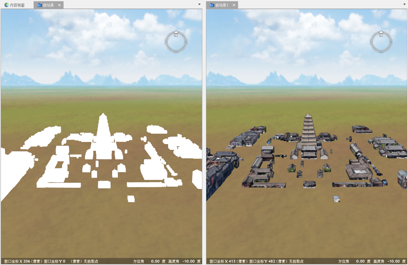 建筑物纹理映射功能可对进行了单体化后的倾斜摄影白膜体要素进行纹理映射,将原始倾斜摄影数据的纹理与生成的白膜体要素嵌合在一起。