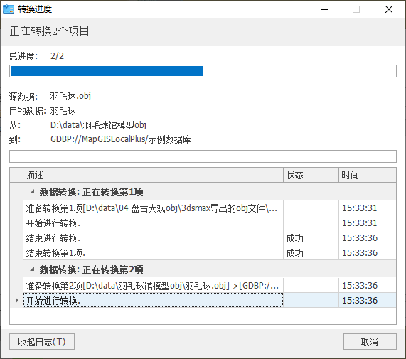 【将结果添加到场景中】:若勾选,则数据转换成功后将结果图层添加到当前场景下;反之,不添加;