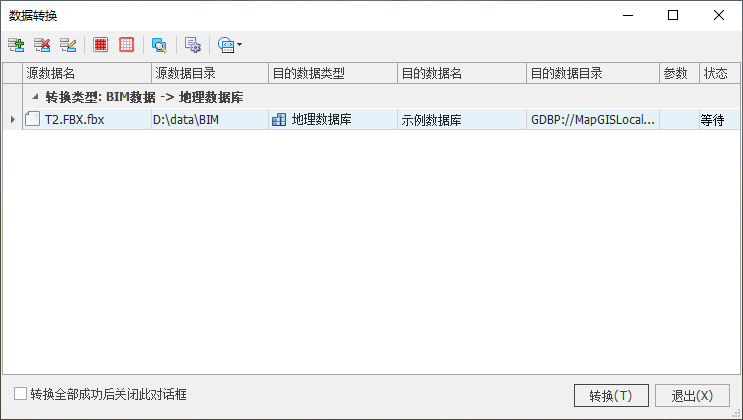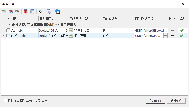 【导入成功后关闭对话框】:若勾选,则数据转换成功后将关闭当前对话框;反之,不关闭。