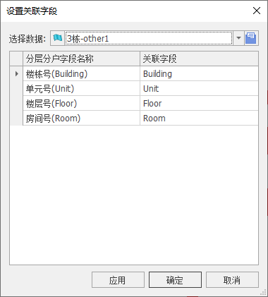 1. 点击【数据】菜单-【分层分户数据】-【设置关联字段】,弹出设置关联字段对话框,如下图所示: