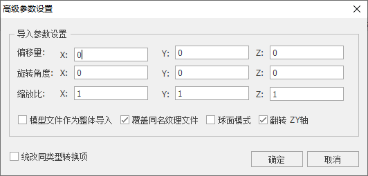 【偏移量】:设置模型导入后偏移坐标;