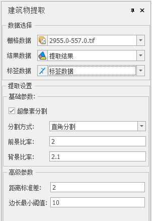 下面对建筑物提取的参数进行说明: