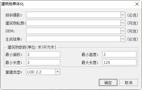 - 【建筑物模型】:输入建筑物单体化中生成的白膜体要素;