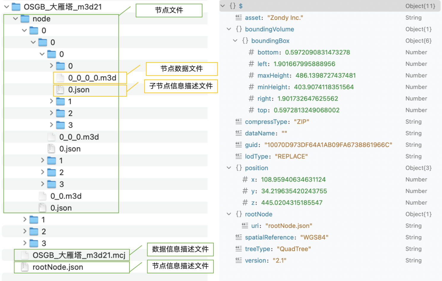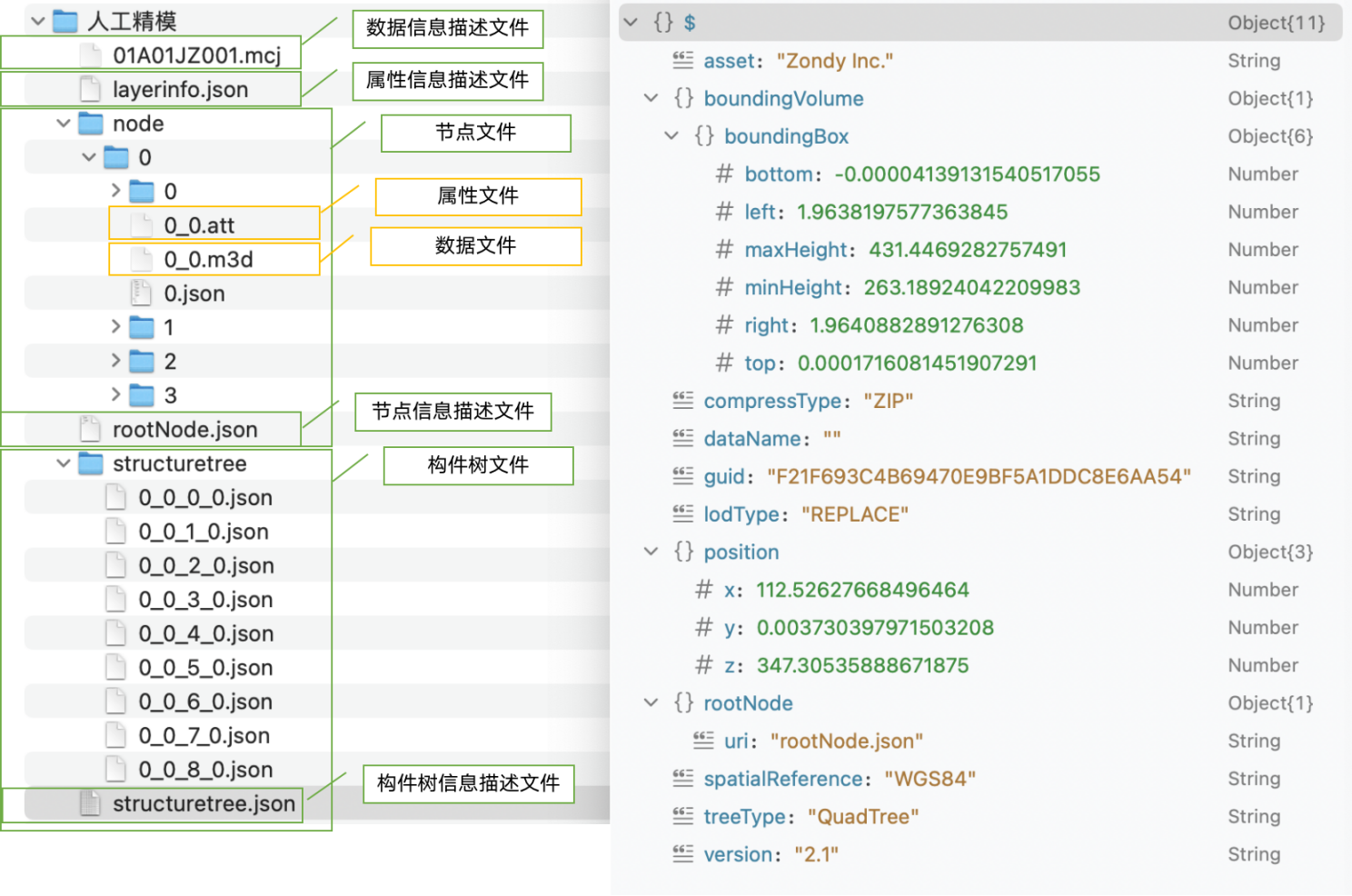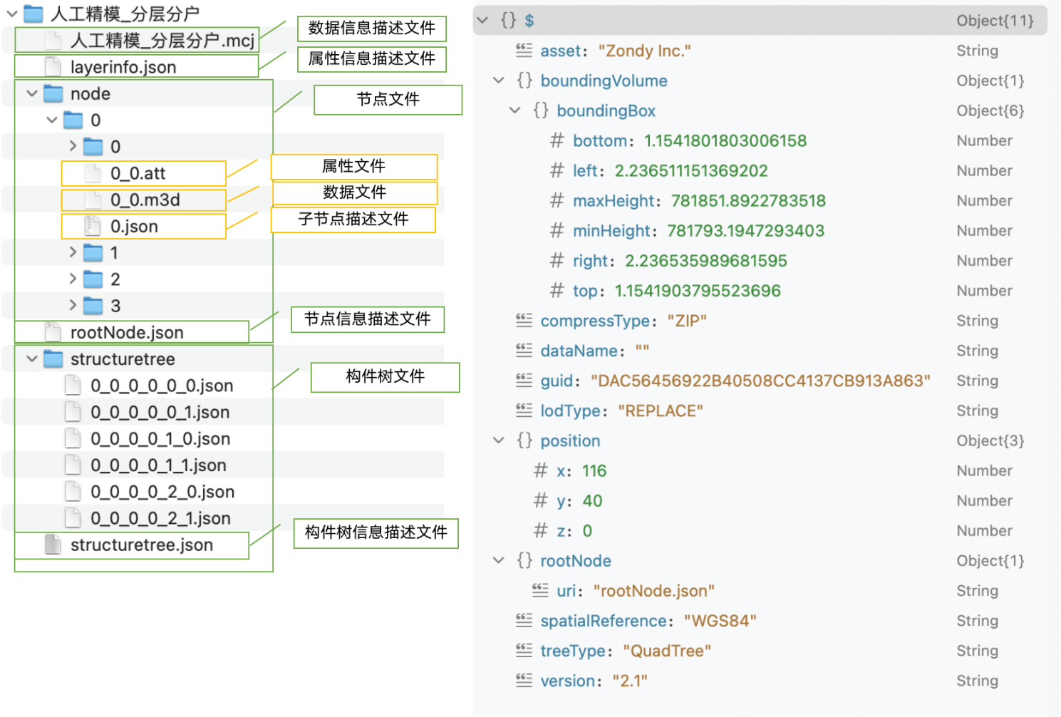 - 倾斜摄影数据M3D文件组成示例如下图,功能模块参考倾斜摄影生成缓存。