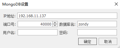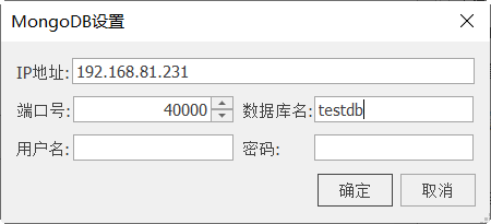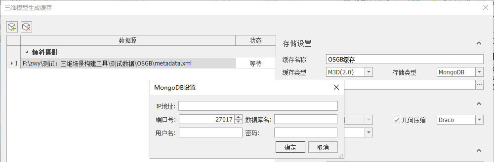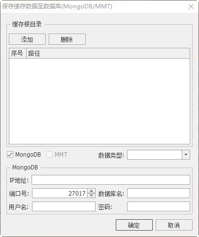 4. 设置MongoDB数据库的IP地址、端口号等信息,点击"确定",完成缓存上载。