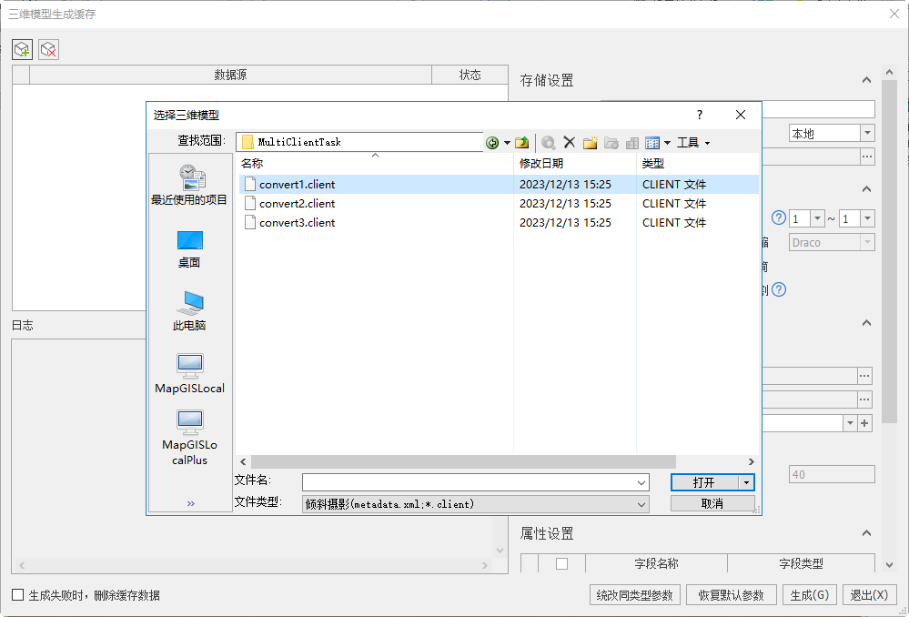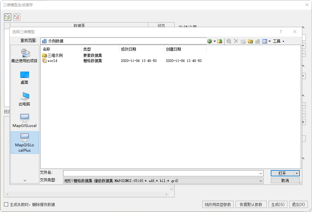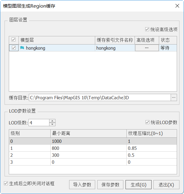 MapGIS支持将模型生成金字塔Region缓存以及M3D缓存数据。