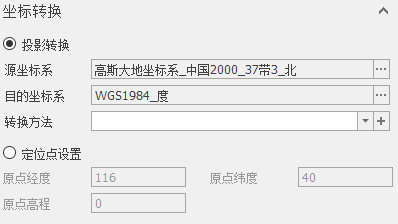 - 【投影转换】:勾选该复选框,用户可以设置源模型数据的坐标系。