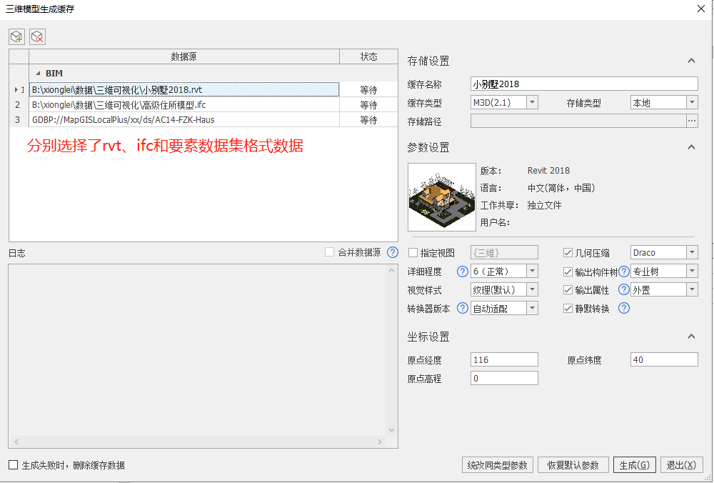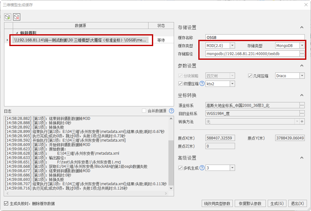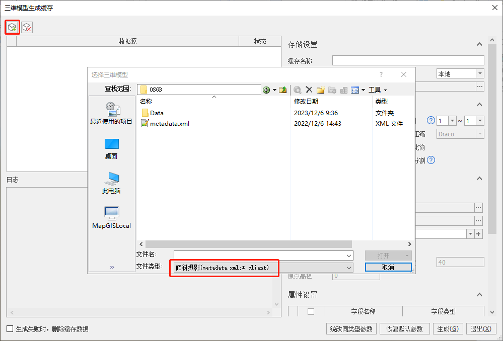【数据源】:M3D 2.0选择源数据文件".mcj",3D Tiles 1.0选择源数据文件".json"。