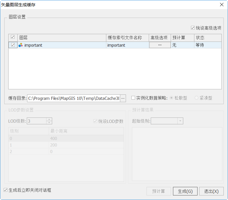 【生成后立即关闭对话框】:勾选“生成后立即关闭对话框”,表示生成缓存后,会自动关闭生成缓存对话框。