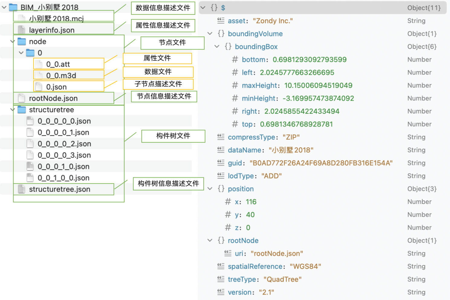 - BIM数据M3D文件组成示例如下图,功能模块参考BIM数据生成缓存。