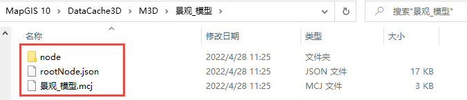 上载后的缓存数据名称为根目录名加数据类型后缀"_M3D"、"_3DTiles"、"_Terrain",如下图所示: