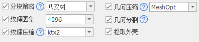 - 【纹理压缩】:勾选时,生产M3D时可对纹理进行压缩处理。