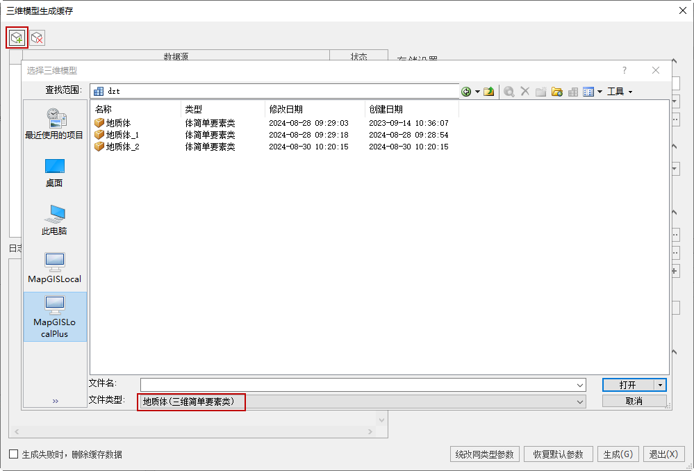 3. 点击"生成",即可执行生成栅格体元M3D缓存操作。