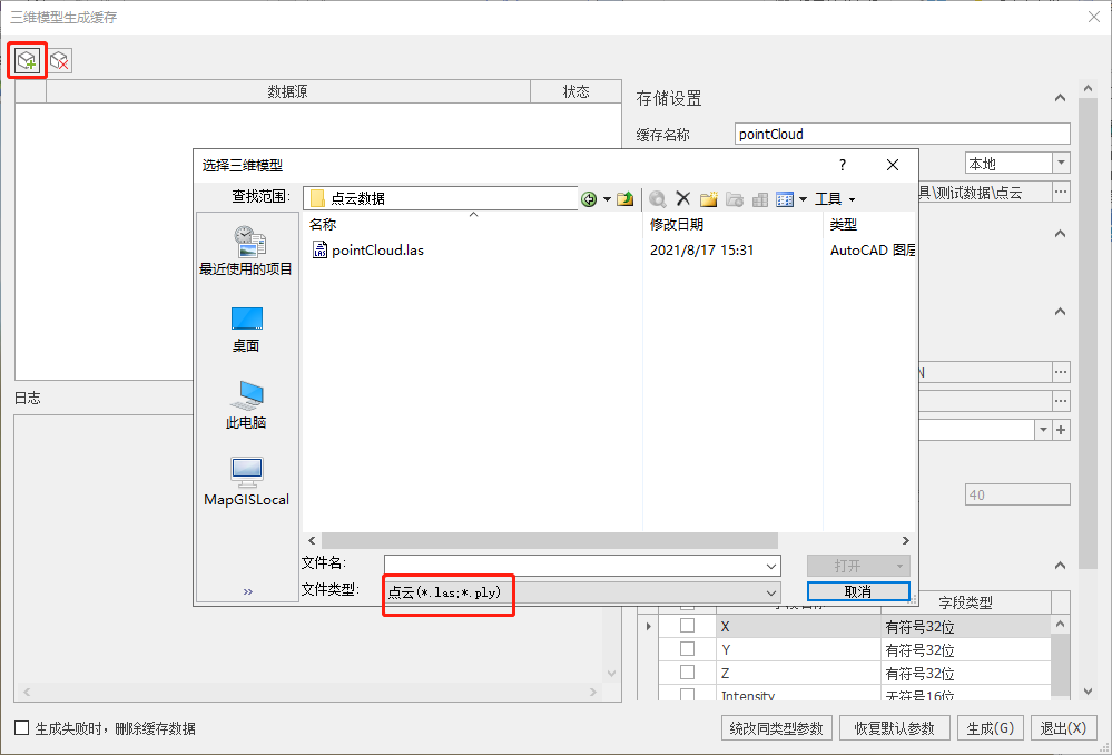 点云数据导入到MapGIS中后,会以矢量点的形式存储。矢量图层创建缓存功能,主要是针对导入的点云数据,通过创建缓存提高数据加载显示效率。