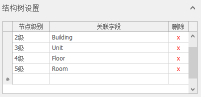 6. 结构树设置。用于组织和展示建筑信息的一种数据结构,以树状结构呈现,类似项目设计的目录,用于统揽模型结构状态。可以自定义多个节点级别并关联到对应的模型属性字段信息。生成缓存后在前端展示此结构树级别。