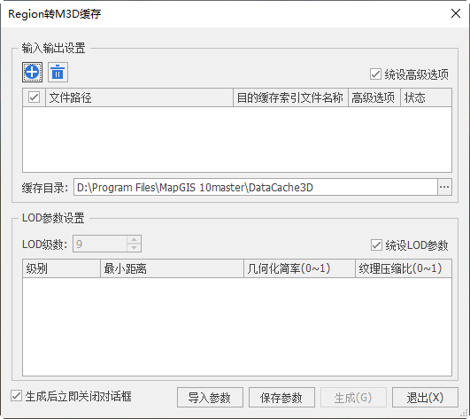 3. 点击"生成"按钮,可在指定位置生成M3D缓存。