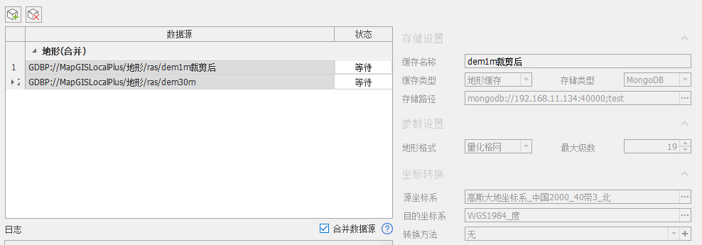 同一个地区有不同精度的DEM数据时,可添加后选择合并数据源进行融合生成。