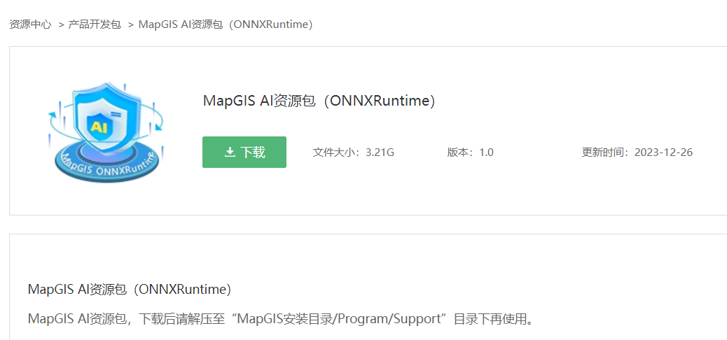3. 下载完成后,直接解压资源包,将解压后的文件夹放至“MapGIS安装目录/Program/Support”目录下,MapGIS AI资源包配置完成。