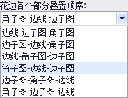 【花边各个部分叠置顺序】:花边各个部分绘制顺序,后绘制的若与先绘制的有重叠部分,将会压盖先绘制的。提供了六种可选的顺序,如下图: