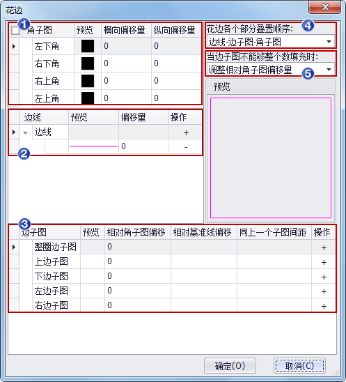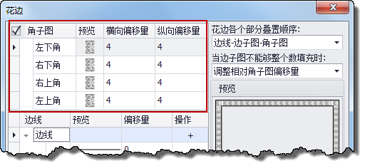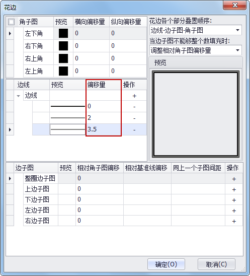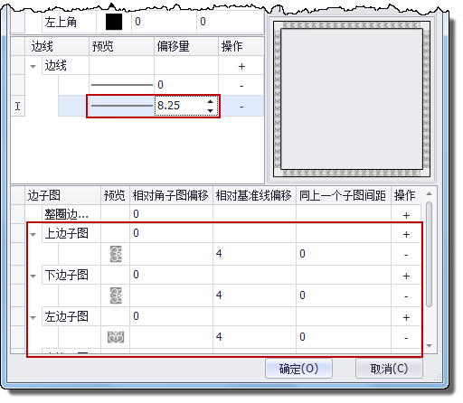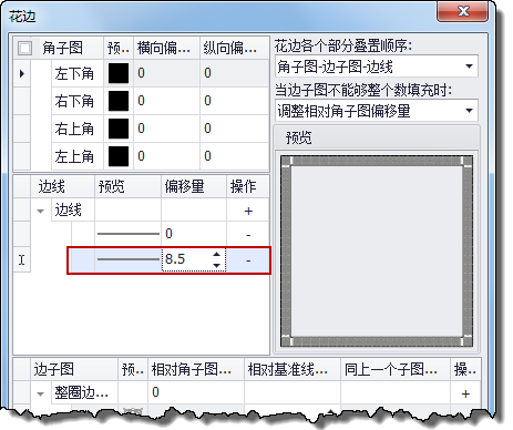 【预览】:双击预览下的空白可以设置边线参数,设置后空白变为预览图;