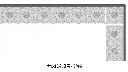 由于第一条边线的线宽较粗,仅依上述方式设置,得出的花边压盖了排版框边线,有可能会遮挡地图排版框内数据(白色的细线为排版框边线),如下图: