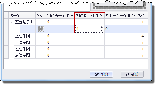 首先,调整花边的相对基准线偏移量,使花边相对于排版框边线向外偏移半个花边高度的距离(该子图参数“高度”、“宽度”为8,因此半个花边高度为4)。
