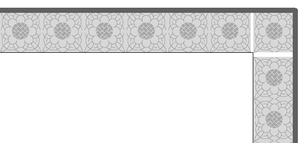 这些花边如果仍使用整边圈子图的方式,花边的左右两边子图将会竖向排列,影响美观,如下图所示,因此,需要设置上、下、左、右的边子图。