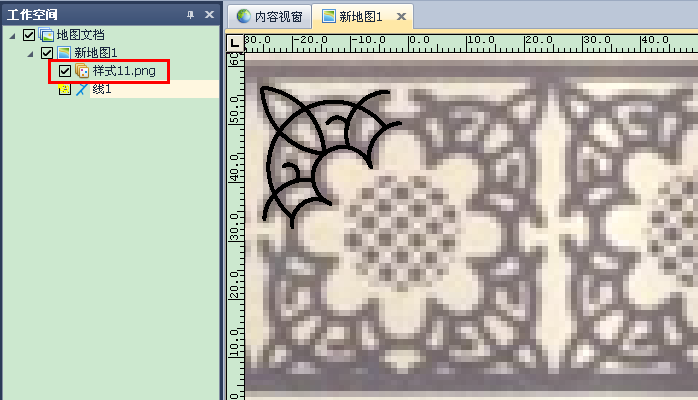 为了绘制的图元与采集的花边图案尽可能一样,一般将花边图案作为底图,在上面描绘花边图元,类似于矢量化过程。