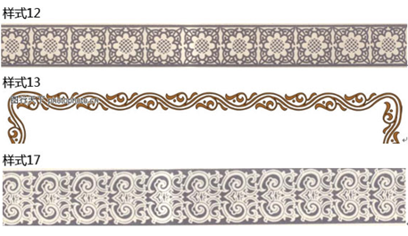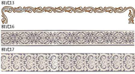 观察花边样式,每个花边都由一个重复的单元连续排列组成,所以绘制花边符号,只需绘制这个重复的单元,因此,首先要找出重复单元。如下图所示,首先分析这些花边的重复单元: