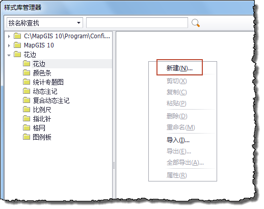 1、选择“样式库管理”,打开“样式库管理器”,在第一步保存了花边符号的系统库下新建一个花边样式;