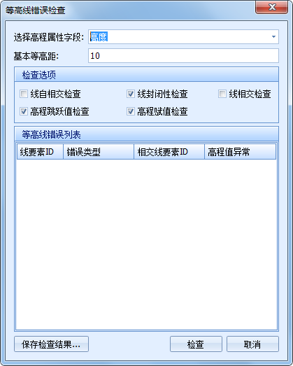 3. 点击"检查"则执行等高线错误检查操作,点击"取消"则取消当前操作。