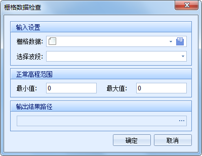 2. 加载需要检查的栅格数据,选择当前处理栅格的波段,输入正常高程范围(加载栅格数据后,系统会根据当前数据的高程范围赋初始值,用户可根据需要进行修改);