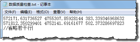 3. 在“输出结果路径”中设置结果文件名和保存路径,点击"确定"即可进行检查。下图为栅格数据查询文本结果(由于“最大值”设置为555,因此将高程值大于555的坐标点信息显示如下):
