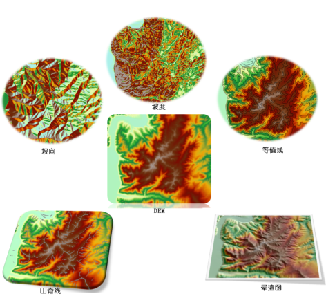 提取地形特征:可基于地形数据提取坡度、坡向、等值线、山谷、山脊线等地形特征,以进行其他的辅助分析操作。