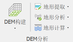 (1)DEM分析功能都放置于“分析”面板的“DEM分析”中: