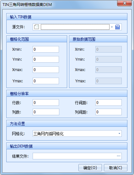 - 【栅格化范围】:TIN数据转换为栅格数据集的范围,系统默认取原始数据范围一致。