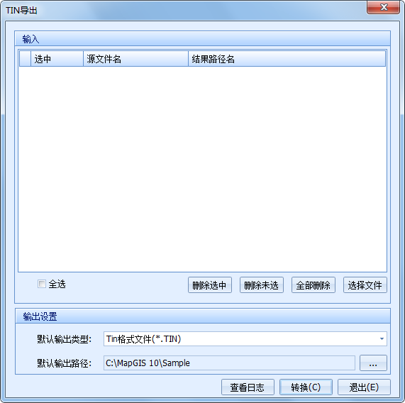 【选择文件】:设置需要进行转换的源文件,格式为*.TIN或*.Det。