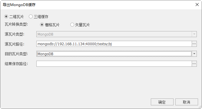 - 结果保存路径:导出为本地存储格式时,选择本地存储路径;导出为网络数据源MongoDB或者PostgreSQL时,需填写数据源的IP端口等信息。