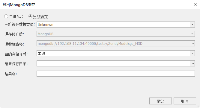 - 结果保存目录:导出至本地时选择本地路存储路径,导出为网络数据源MongoDB或者PostgreSQL时,需填写数据源的IP端口等信息;