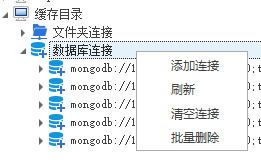 鼠标右键"数据库连接",可以添加连接、刷新、清空连接、批量删除;