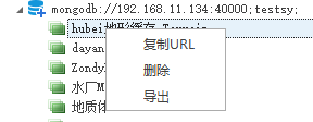 【复制URL】:复制缓存数据的URL,格式形如:mongodb://192.168.11.134:40000;testsy;hubei地形缓存_Terrain;