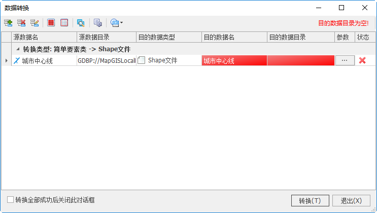 4. 点击"转换",可将*.shp文件导入到MapGIS GDB中。