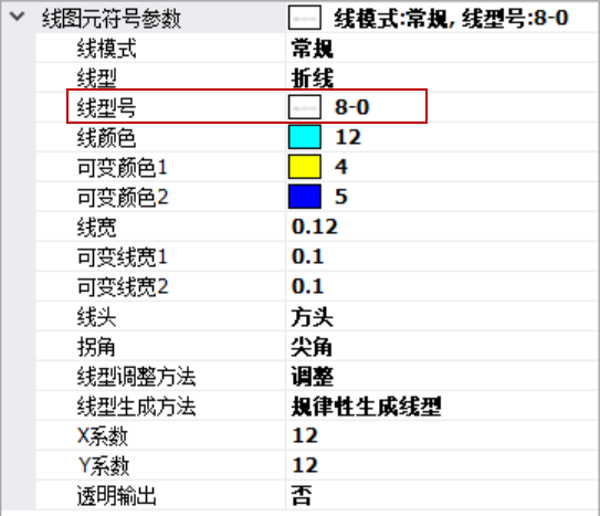 在MapGIS矢量数据中,矢量线数据是通过关联系统库中某一个“线型号”来进行符号化显示;在dxf/dwg数据中,矢量线通过“线型”来进行符号化显示。