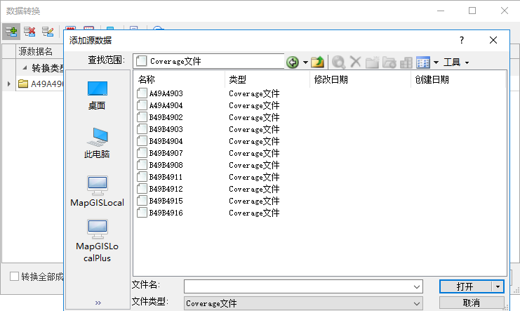 3. 点击"转换",可将Coverage数据导入为MapGIS的要素数据集。