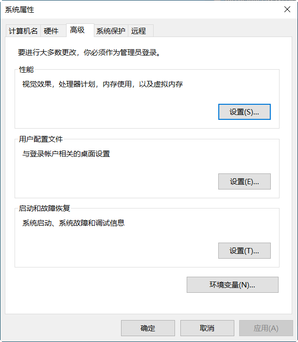 3. 点击【环境变量】,设置系统环境变量,依次新建如下四个环境变量信息: