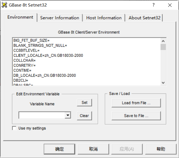 其中GBASEDBTDIR设置成GBASE客户端的安装路径(如D:\Program Files\GBase Client-SDK\),GBASEDBTSERVER设置成服务器端的GBASE实例名(如gbaseserver)。