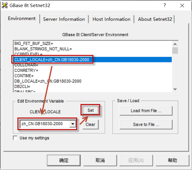 | CLIENT_LOCALE | zh_CN.GB18030-2000 | 客户端字符集 |