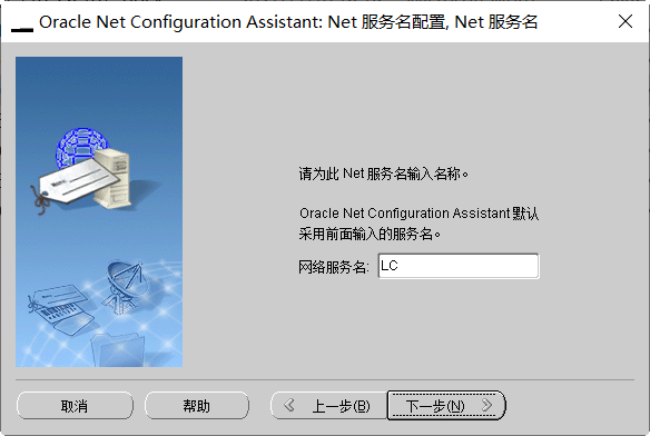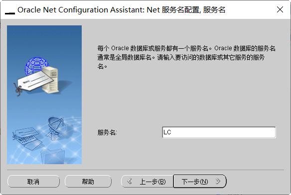 3. 点击"下一步",配置服务名称,此处需输入Oracle服务器端创建的实例名称;