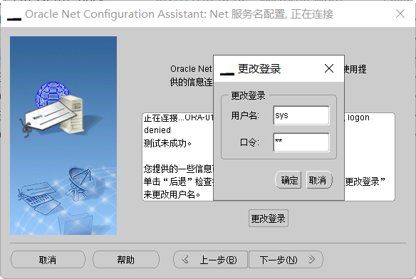 7. 点击"下一步",测试连接信息。但一般情况下,默认的测试结果不通过。需更改登录信息,输入正确的用户名/口令信息;